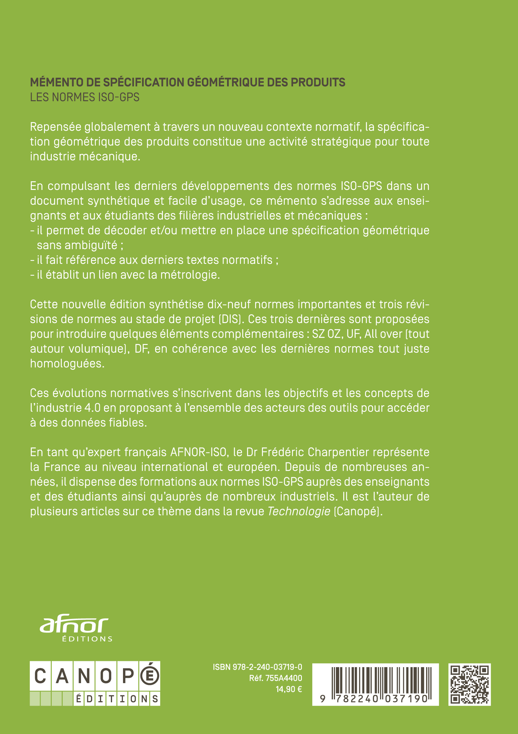 J’ai le plaisir de vous annoncer la sortie de la 4e édition du « Mémento de spécification géométrique des produits, les normes ISO - GPS » aux éditions AFNOR et CANOPÉ.